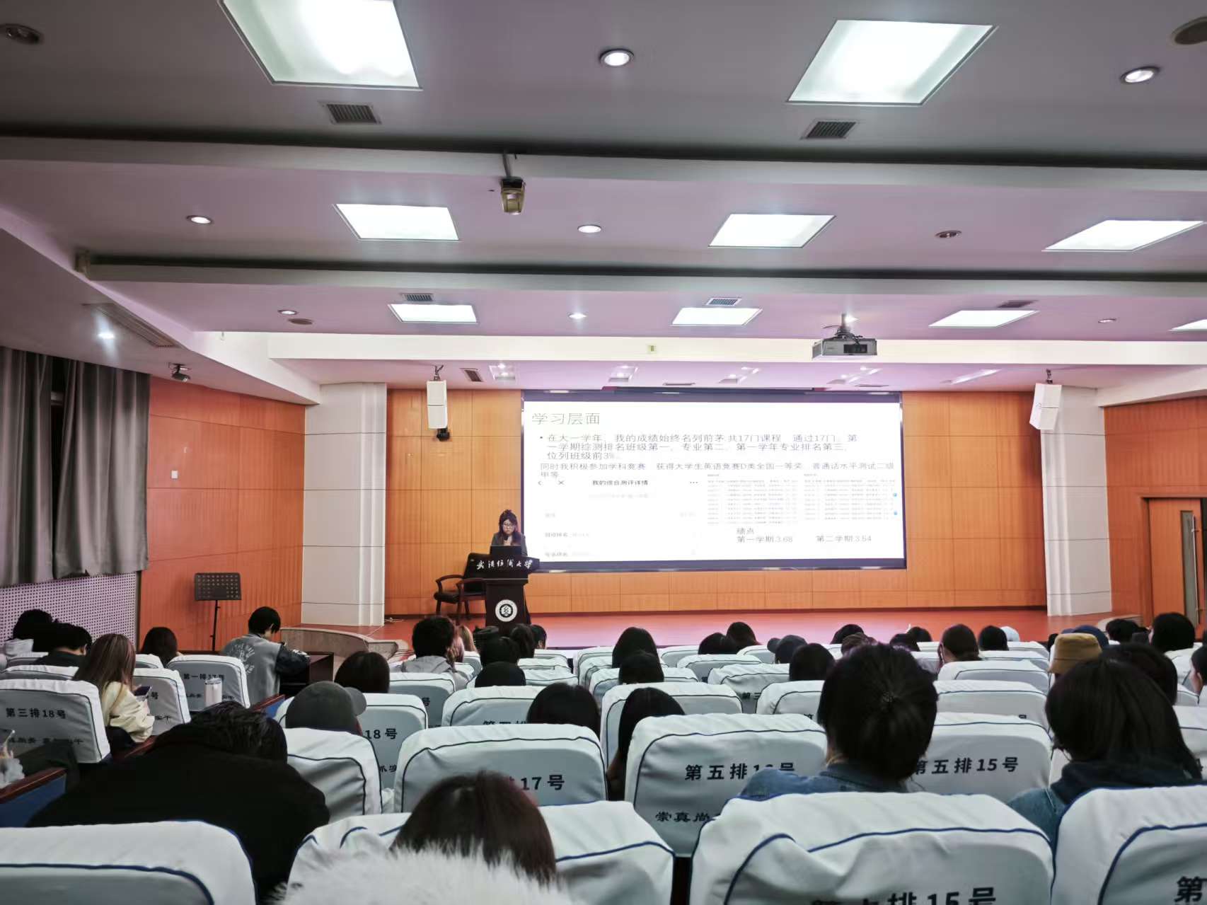 本次班会,2024级还邀请了三位综测突出的学生代表分享学习经验感悟。数字媒体艺术专业的高畅、视觉传达设计专业的董凌然以及环境设计专业的张义果,分别聚焦学科竞赛、学生干部工作、社会实践、英语备考等展开分享。