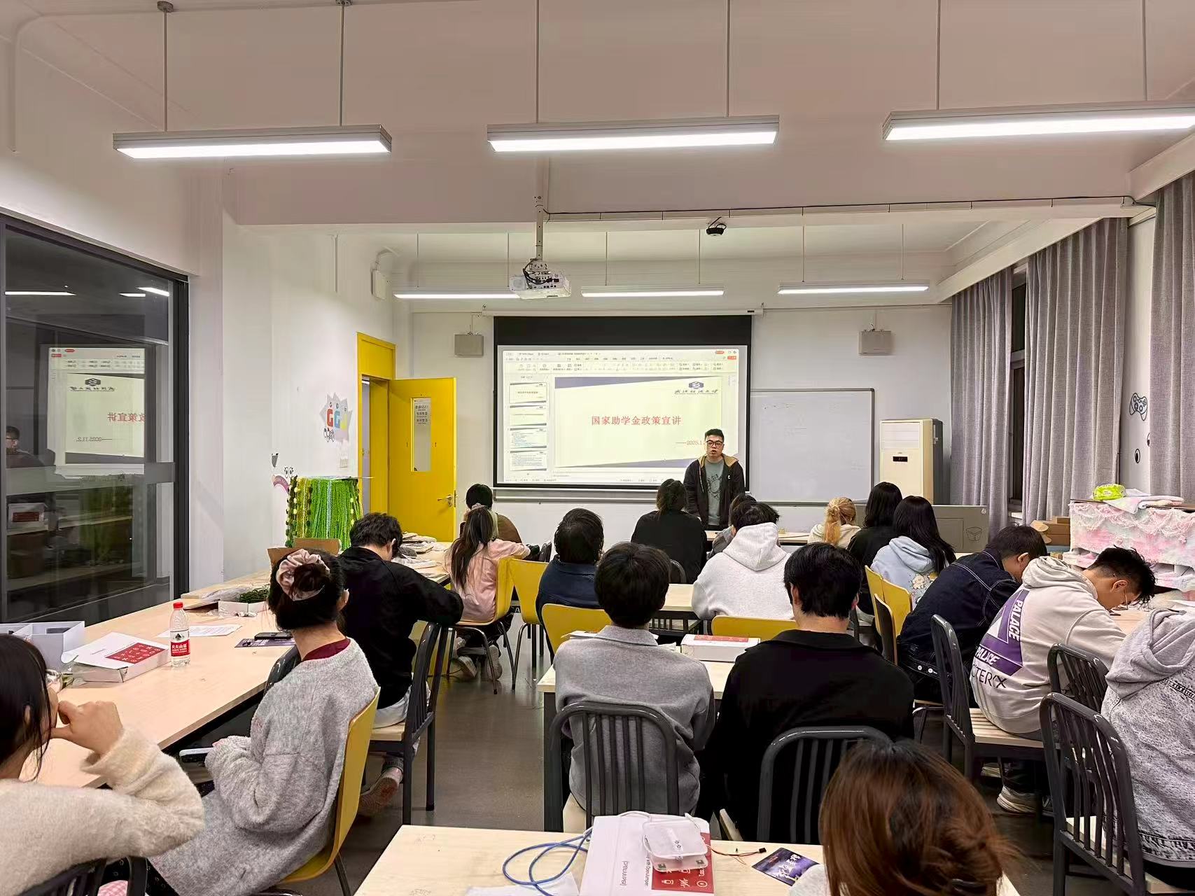 随后,会议重点对本科生攀登奖学金、国家励志奖学金与国家助学金开展政策宣讲,并详细说明“先进班级”“先进个人”评选工作。班主任详细介绍了评选标准与申请条件,并强调诚信的重要性,对存在违纪违规行为、弄虚作假或无故不参加集体活动的学生,将不予批准申请。