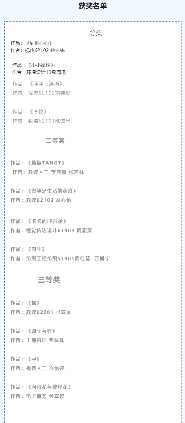 经过初审、专业评比最终选出优秀作品12幅。不同作品也表现出同学们的不同视角,每个作品都充分展现了学生们的心理健康知识底蕴与艺术创意技能的结合。通过不同形式展现了新时代大学生风采。
