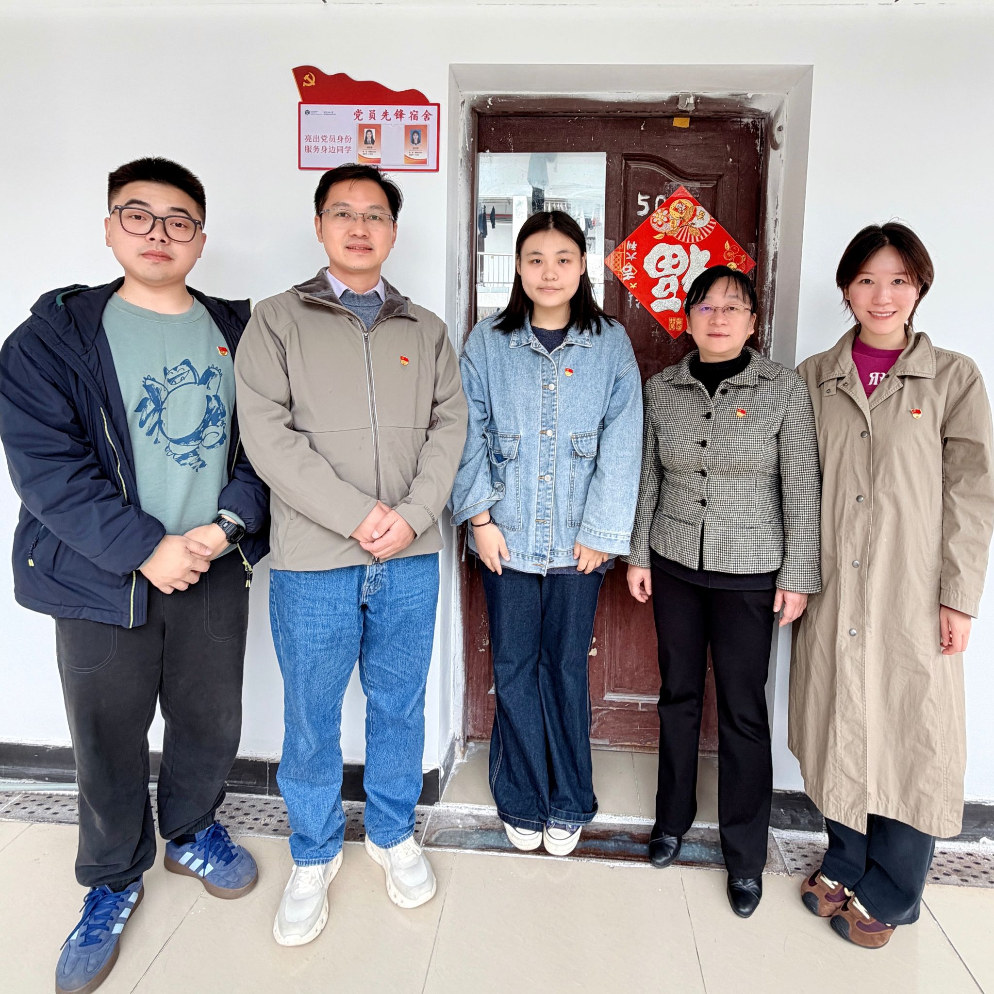 活动过程中,向荣一行走访了相关宿舍,与学生党员进行了深入交流,详细了解了他们的学习、生活及作用发挥情况,党员师生一起将“党员先锋宿舍”牌悬挂于宿舍门前。向荣充分肯定了学生党员们在思想引领、学风建设、宿舍文明等方面所发挥的模范带头作用,勉励他们要珍惜这份荣誉,不仅要把牌子挂在门上,更要把党员的责任与担当扛在肩上、落在行动上,切实将宿舍建设成为彰显先进性、凝聚同学重要阵地。
