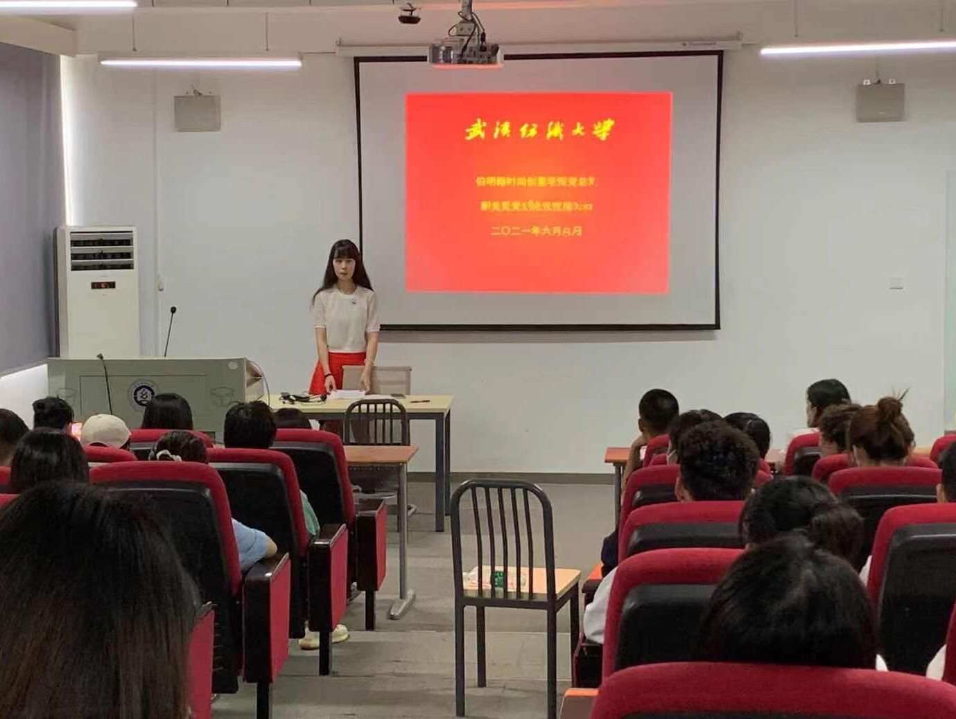 为深入贯彻落实学校学校党委部署的以实际行动庆祝建党100周年主题活动方案,伯明翰时尚创意学院于6月5日晚在尚美楼705多媒体教室开展支部书记讲党课系列活动。本次党课主讲人为视觉传达设计学生党支部书记陈畅同志,全体学生党员参加会议。