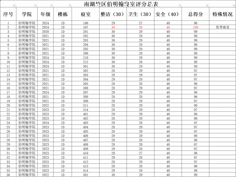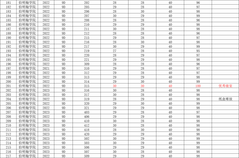 为加强宿舍管理,确保宿舍环境整洁、安全、有序,特制定本周检公示表。通过定期检查和公示,旨在提高同学们的卫生意识和安全意识,共同营造一个良好的学习和生活环境。
