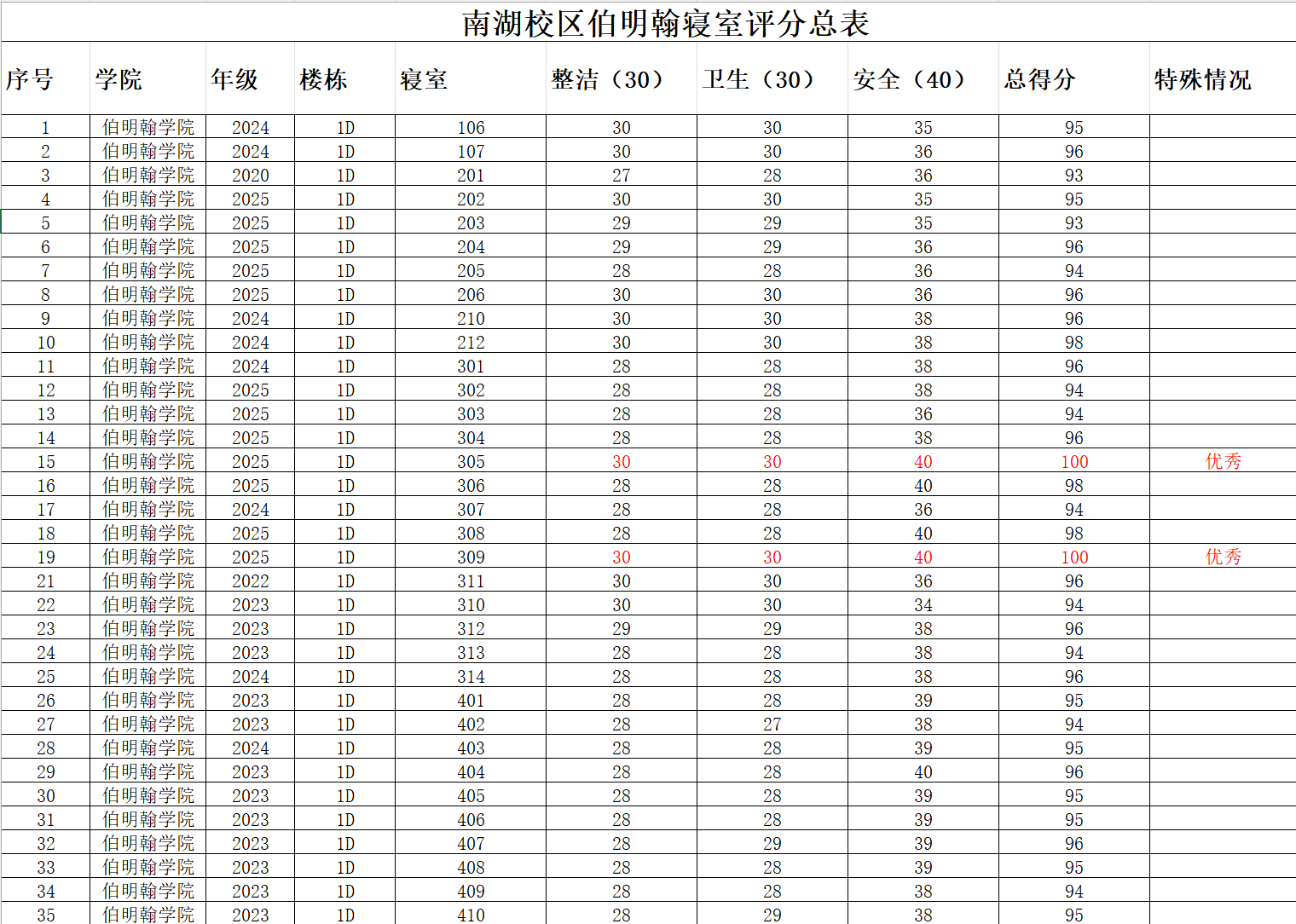 为加强宿舍管理,确保宿舍环境整洁、安全、有序,特制定本周检公示表。通过定期检查和公示,旨在提高同学们的卫生意识和安全意识,共同营造一个良好的学习和生活环境。