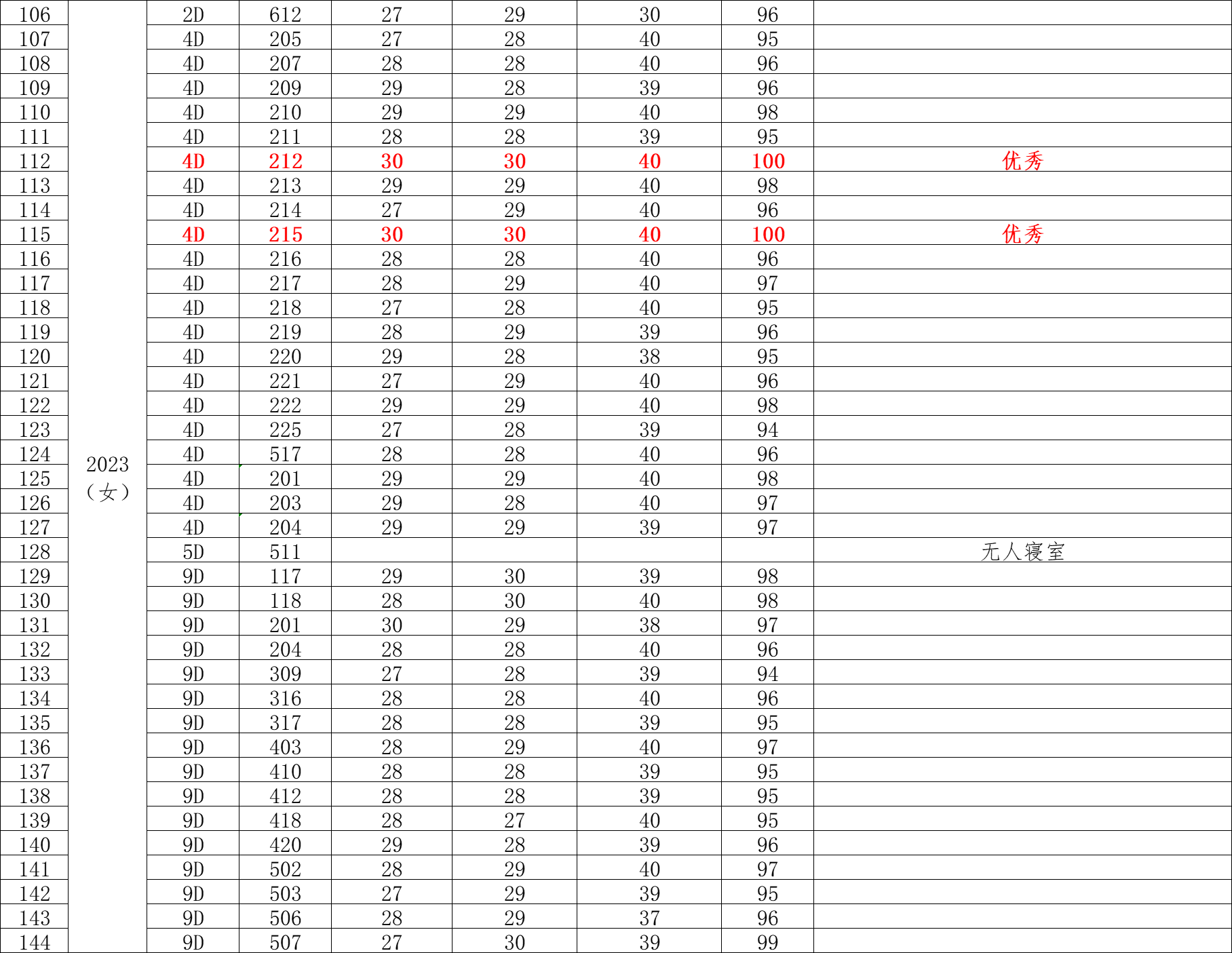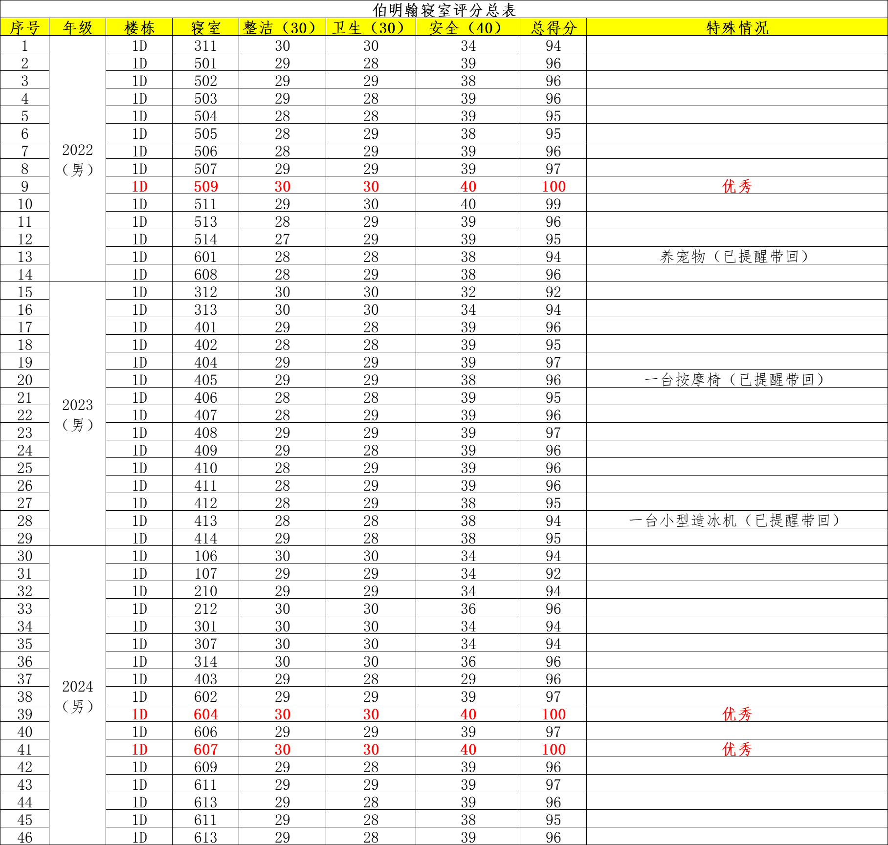 本周标杆宿舍:1栋509,1栋604,1栋607,2栋312,2栋613,4栋212,4栋215,8栋201,8栋223,9栋113,9栋120