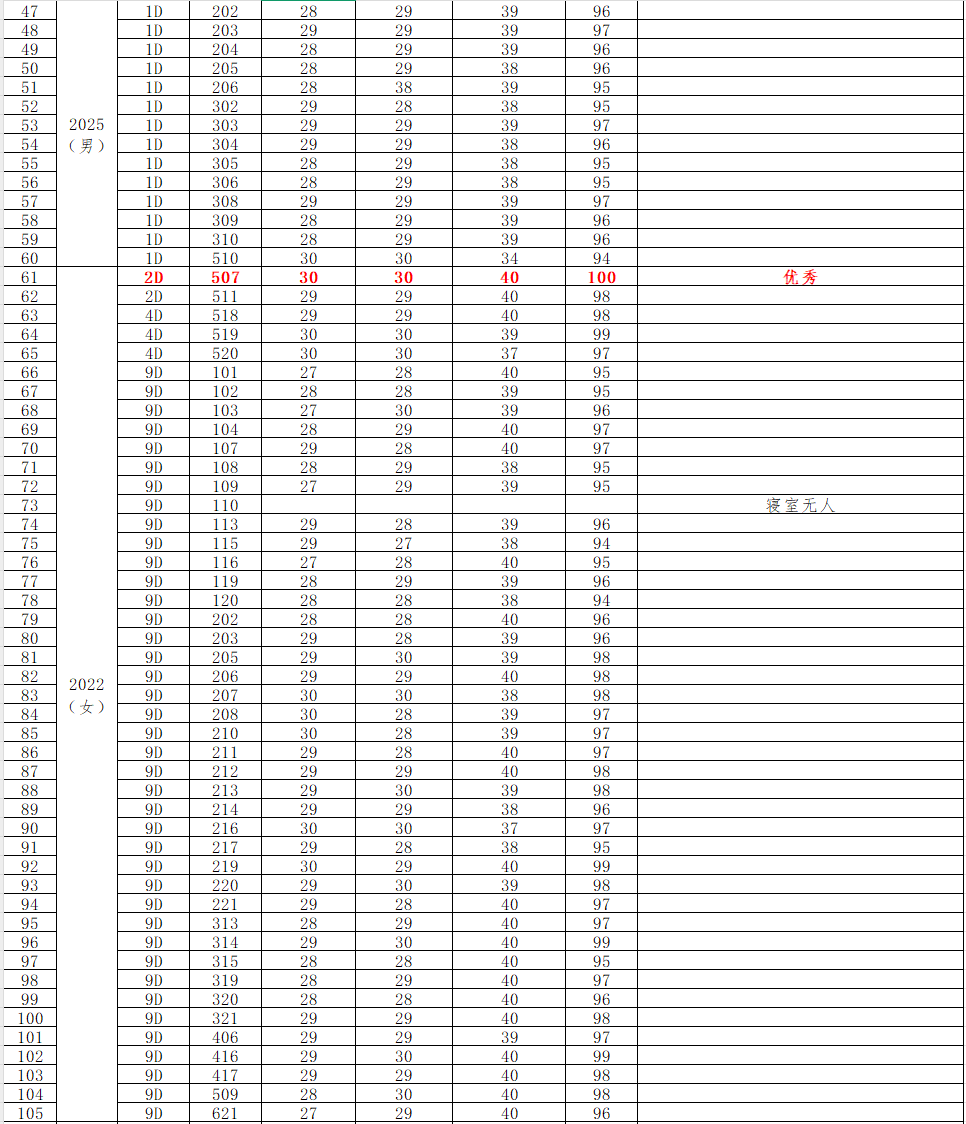 本周标杆宿舍:1栋107,2栋507,2栋612,2栋308,4栋213,4栋217,8栋201,8栋216,8栋223,9栋412