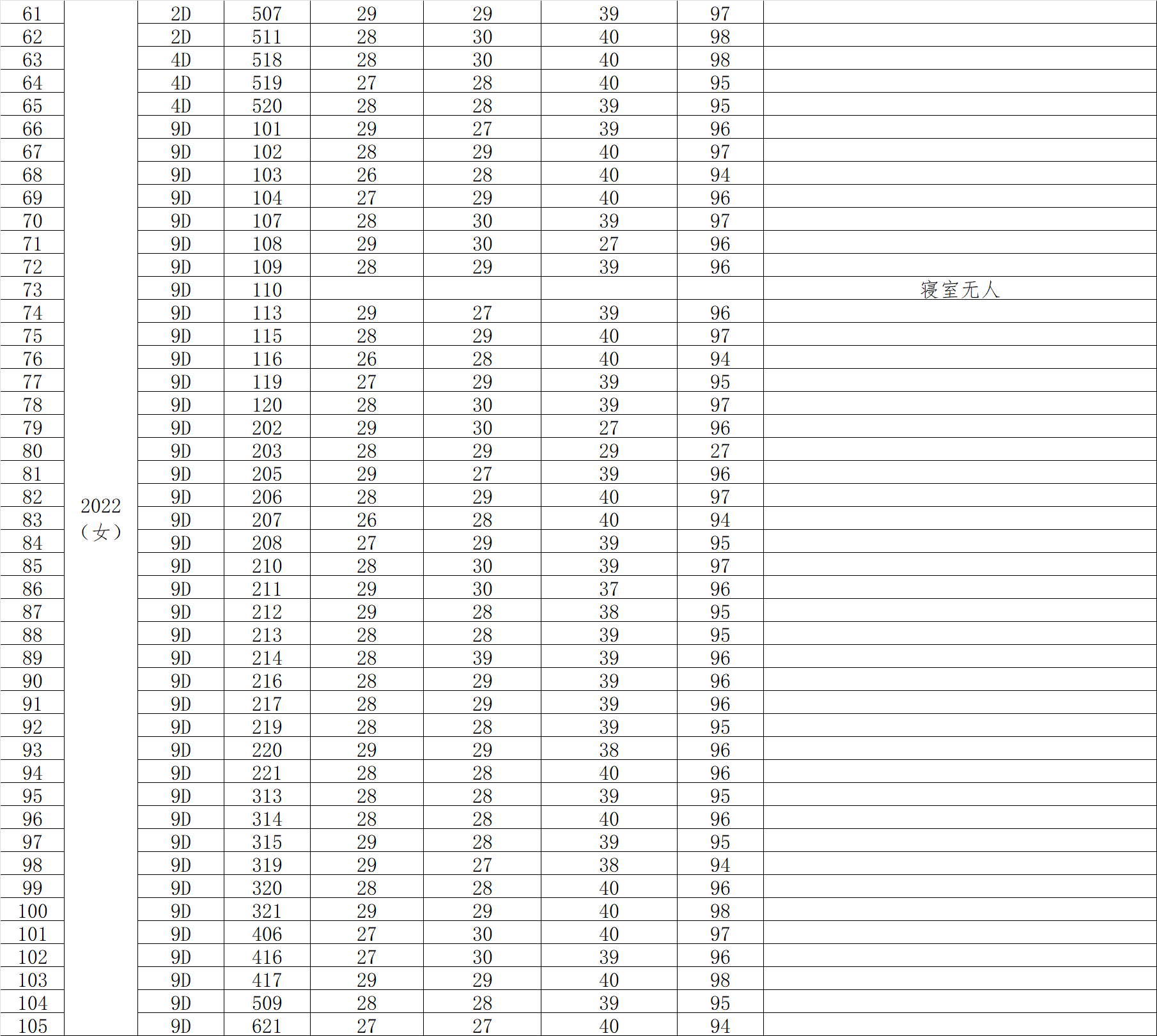 为加强宿舍管理,确保宿舍环境整洁、安全、有序,特制定本周检公示表。通过定期检查和公示,旨在提高同学们的卫生意识和安全意识,共同营造一个良好的学习和生活环境。