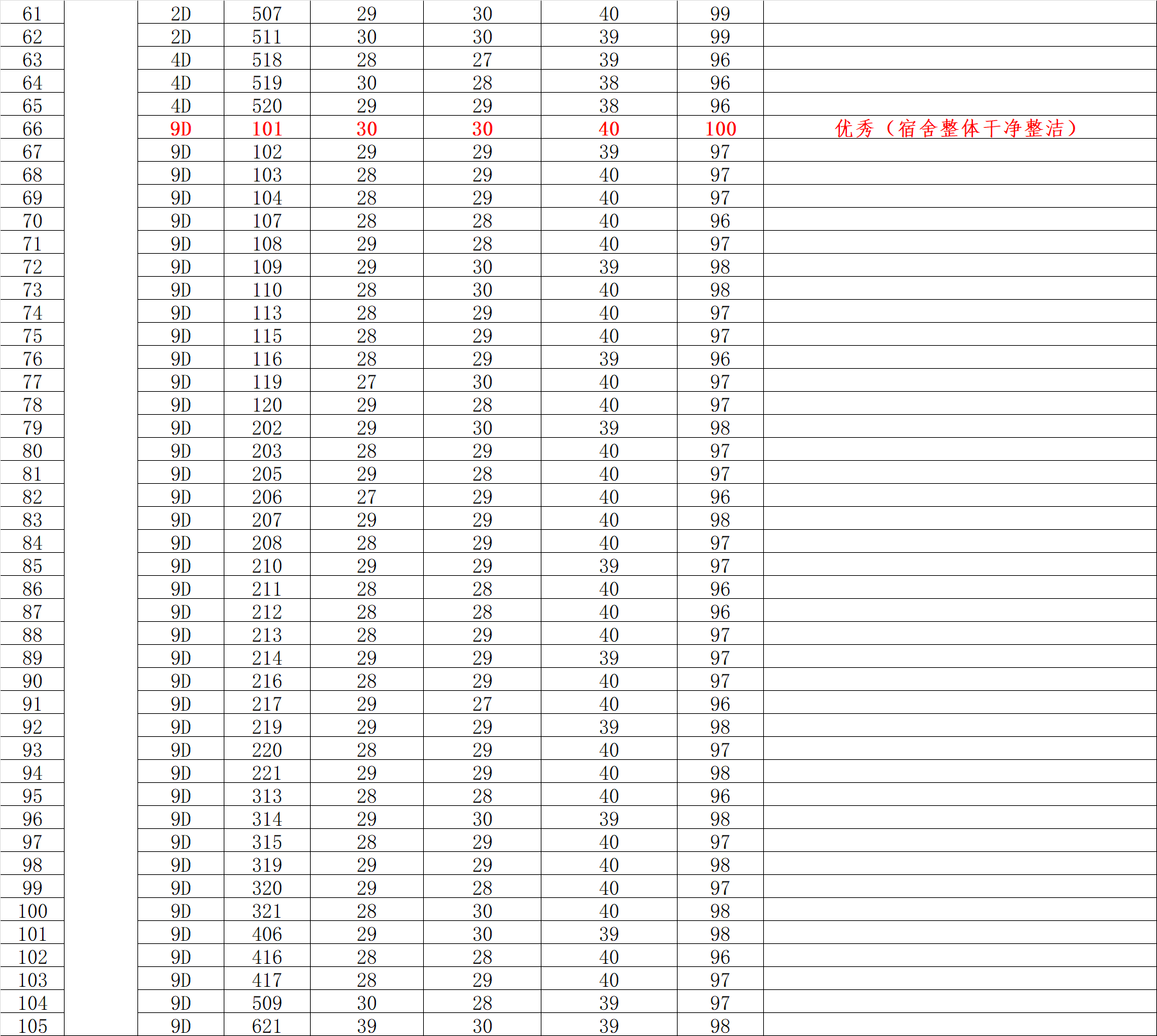 本周标杆宿舍:1栋310,9栋101,2栋204,8栋220