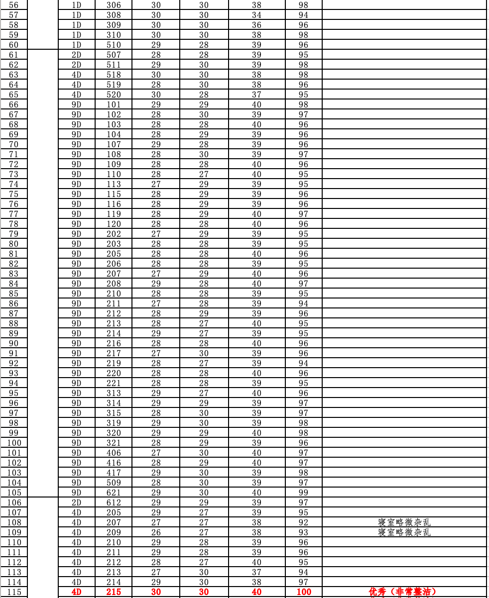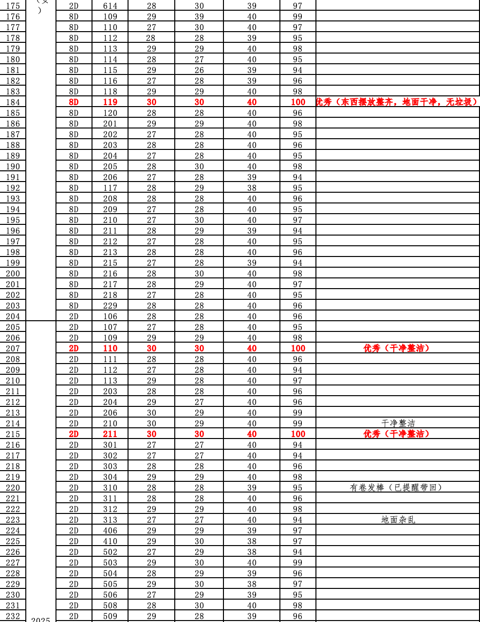 本周标杆宿舍:1栋413,1栋305,4栋215,4栋216,8栋119,8栋223,2栋110,2栋211